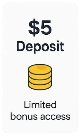 A $5 deposit often doesn’t qualify for full bonuses, while $10 unlocks: